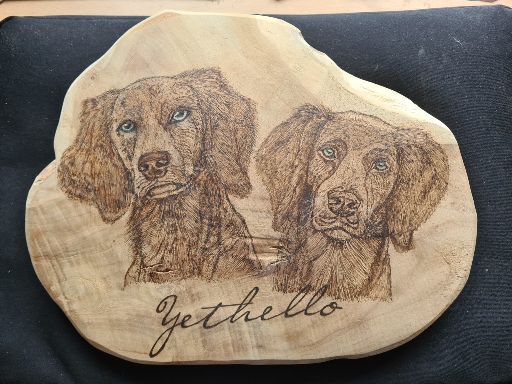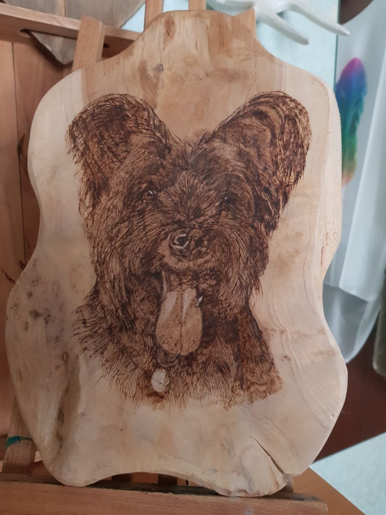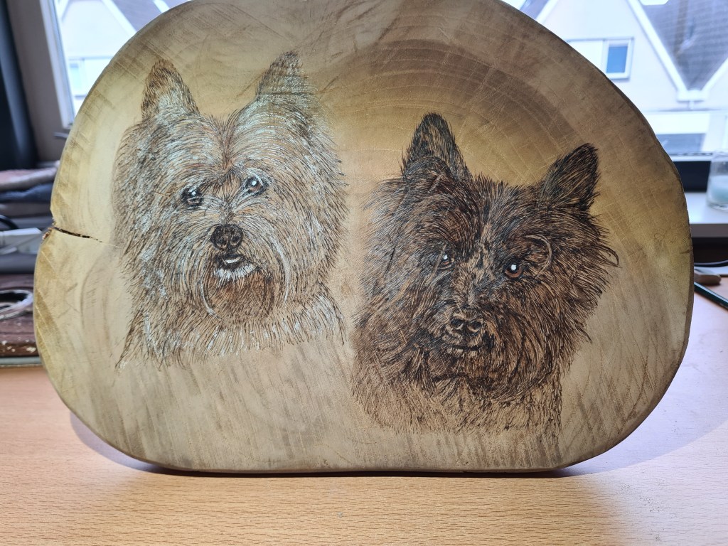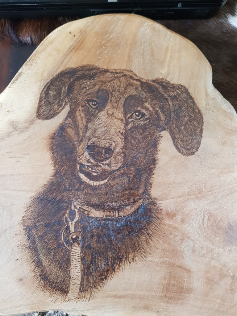 In de subpagina’s vind je voorbeelden van een aantal van mijn handgemaakte portretten in pyrografie en pastel met foto en eindresultaat.