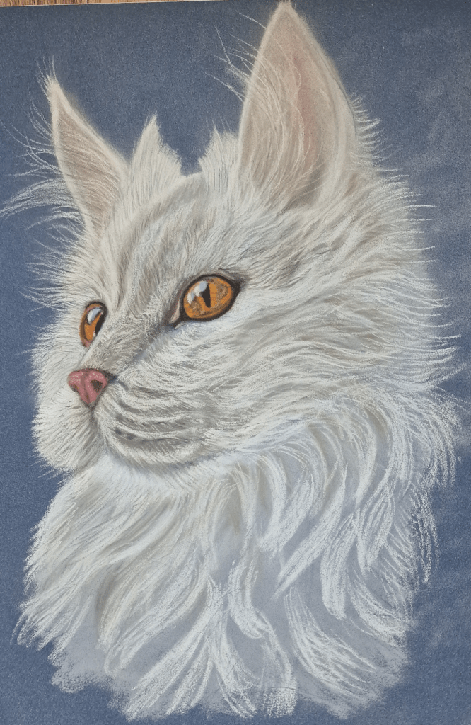 Pasteltekeningen worden gemaakt met pastelkrijt en pastelpotloden waarmee kleur, diepte en details worden opgebouwd. Door in meerdere lagen te werken, ontstaat een levendig portret waarin vachtstructuur, licht en expressie naar voren komen.
