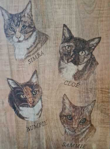 Een hele mooie opdracht was van deze 4 katten. Het was een uitdaging goede foto’s te vinden maar het is gelukt. Eigenaar was hier heel erg blij mee!