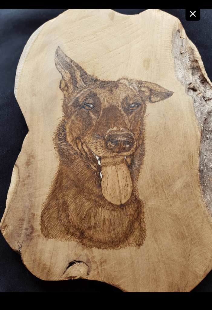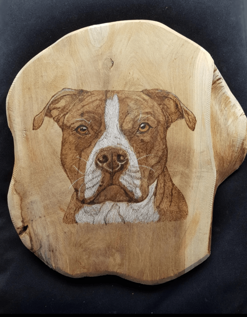 Pyrografie, ook wel houtbranden, is een eeuwenoude techniek waarbij met hitte lijnen en schaduwen in hout worden gezet. Met deze techniek maak ik warme, natuurlijke dierenportretten waarin de ziel, blik en energie van het dier centraal staan. Het is een ambachtelijke en tijdrovende techniek, maar daardoor ontstaat een portret met een unieke diepte. Een pyrografieportret is warm, puur en tijdloos.