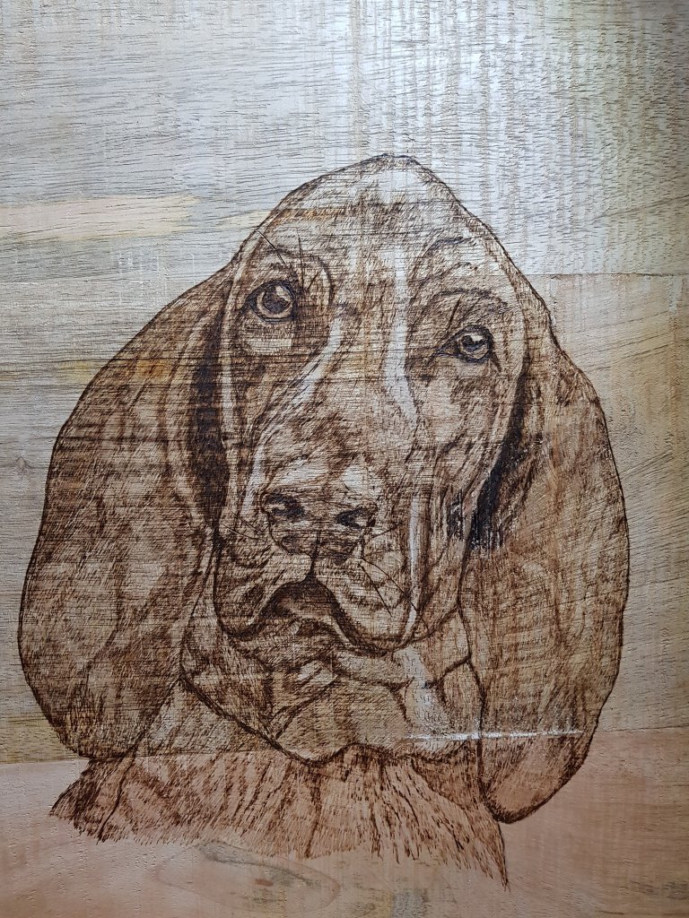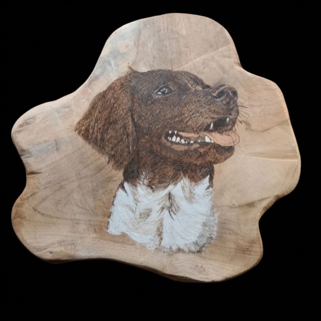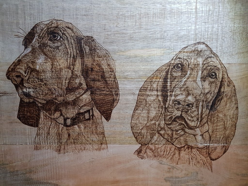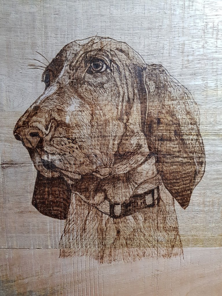 Hier een mooie opdracht van 2Bracco Italiano. Ik kreeg 2 aparte foto’s die ik heb kunnen bewerken en waarvan ik zo een mooi houtbrandstuk heb kunnen maken.