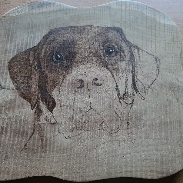 DIERENPORTRETTEN IN HOUTBRANDEN (PYROGRAFIE) EN PASTEL