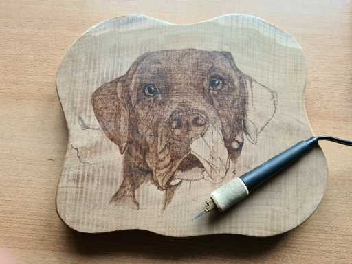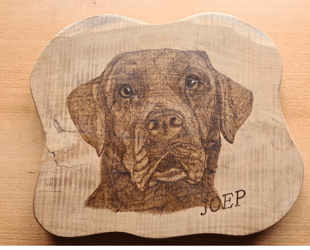 Hieronder een kijkje in hoe het maken van een pyrografiewerkstuk of pastelwerkstuk in zijn werk gaat